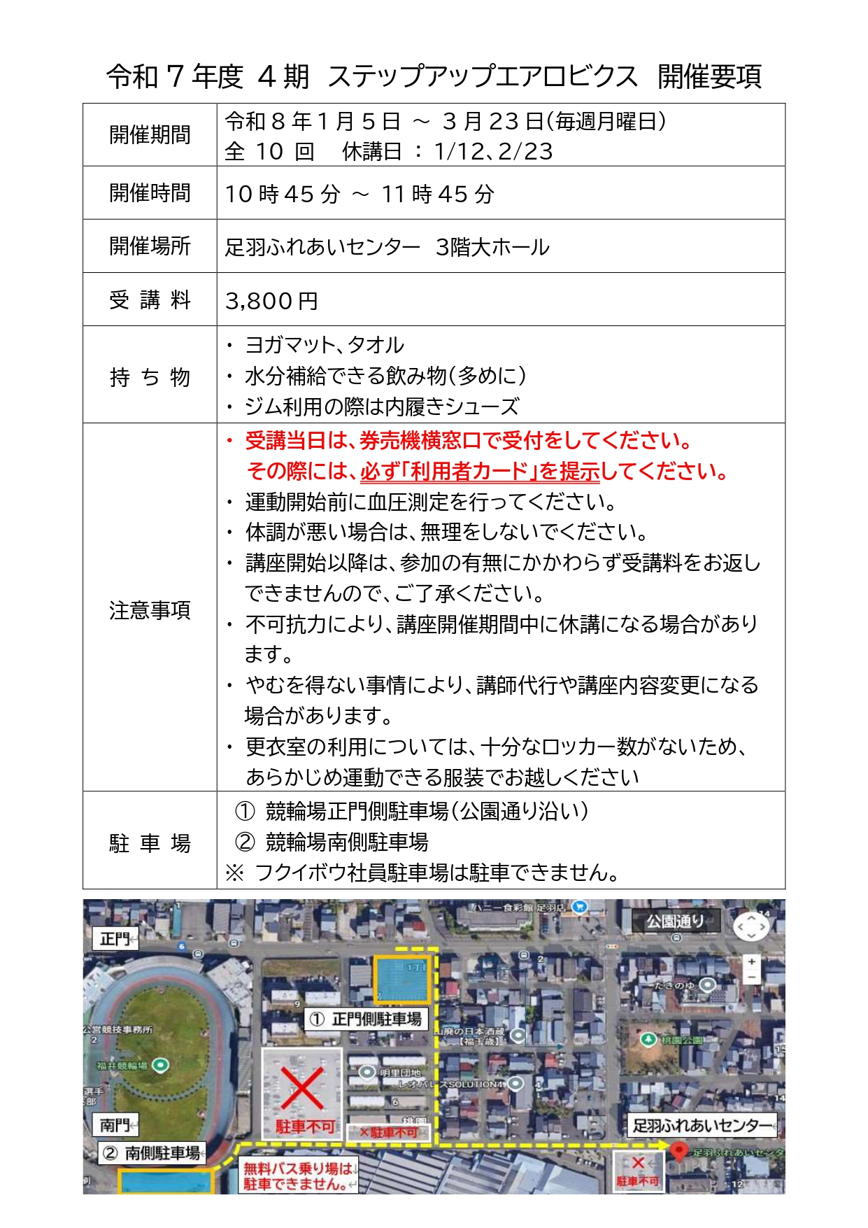 ステップアップエアロビクス1/5~3/2310:45~11:453,80014人